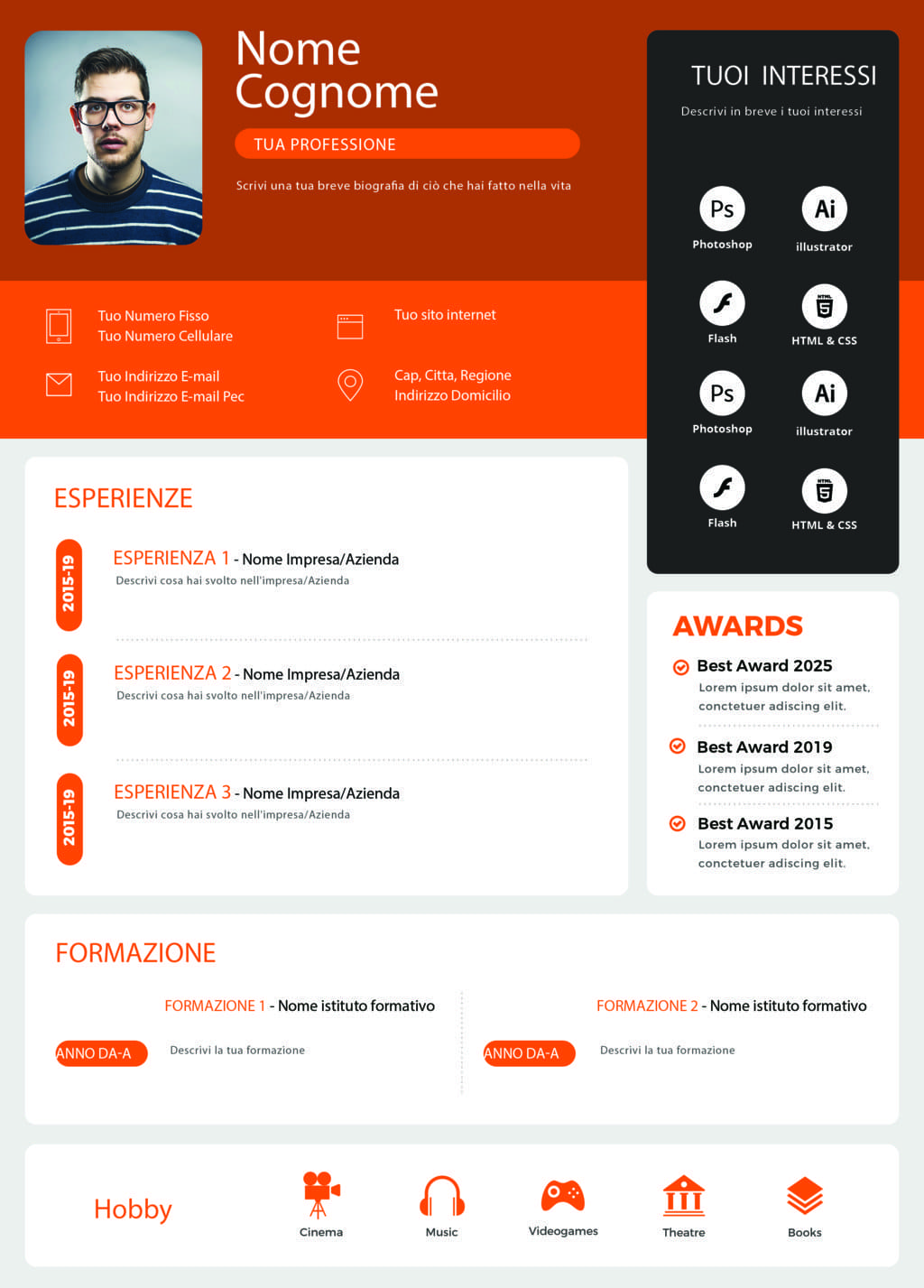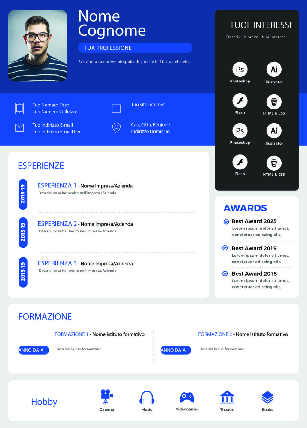 Dynamic Creative CV 2, Immagina in pochi click di avere un tuo C.V personalizzato da mettere ovunque, Instagram, Facebook e tanti altri social, potrai caricare la tua immagine C.V e avere la possibilità di essere contattato. Quante volte ti è capitato di dover mandare e-mail, documenti e spesso ti sei trovato in difficoltà perché non potevi compilarlo?