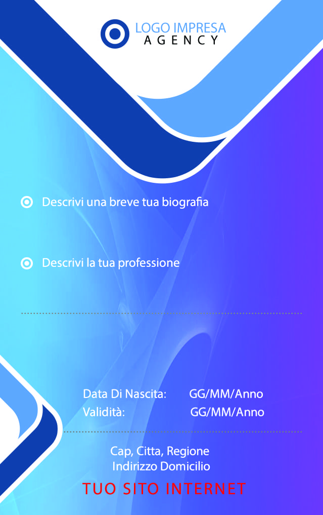 Dimenticati di pensare alle grafiche, la progettazione e tutto quello che è i preparativi, grazie alla vasta scelta di grafiche potrai personalizzare, e realizzare il tuo Badge personale. Proponiamo delle Badge personalizzabili per i propri scopi, inserendo logo, nome azienda/impresa e i rispettivi contatti. Tutti i livelli sono completamente organizzati e strutturati in modo da poter trovare testo, colore ma anche immagini Ecc.. Troverai grafica di qualità davvero avvincenti e professionali, kit di progettazione dell’interfaccia utente, progetti di mock-up. Tutti i nostri psd sono disponibili per uso personale e commerciale. Offriamo anche consulenza e assistenza (a pagamento) per realizzare il tuo Pass-ID di alto livello da parte del nostro Team.
