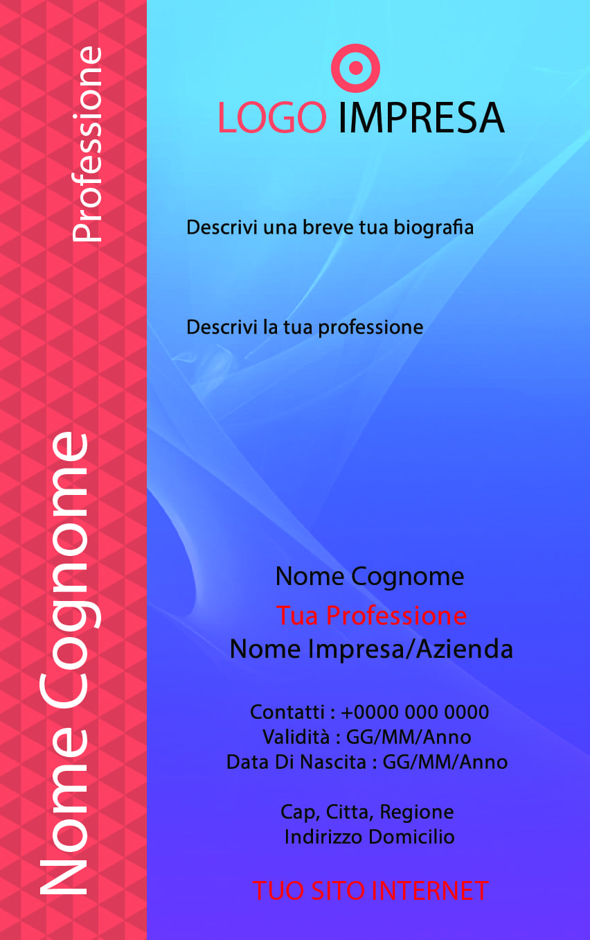 Dimenticati di pensare alle grafiche, la progettazione e tutto quello che è i preparativi, grazie alla vasta scelta di grafiche potrai personalizzare, e realizzare il tuo Badge personale. Proponiamo delle Badge personalizzabili per i propri scopi, inserendo logo, nome azienda/impresa e i rispettivi contatti. Tutti i livelli sono completamente organizzati e strutturati in modo da poter trovare testo, colore ma anche immagini Ecc.. Troverai grafica di qualità davvero avvincenti e professionali, kit di progettazione dell’interfaccia utente, progetti di mock-up. Tutti i nostri psd sono disponibili per uso personale e commerciale. Offriamo anche consulenza e assistenza (a pagamento) per realizzare il tuo Pass-ID di alto livello da parte del nostro Team.